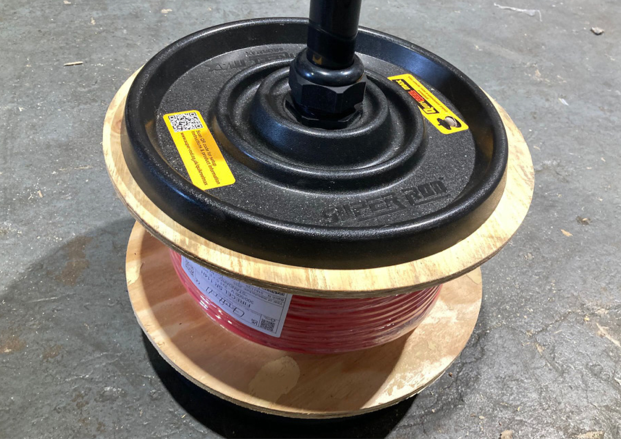 Quick-change drum system enabling you to swap cable reels in seconds with a simple screw turn